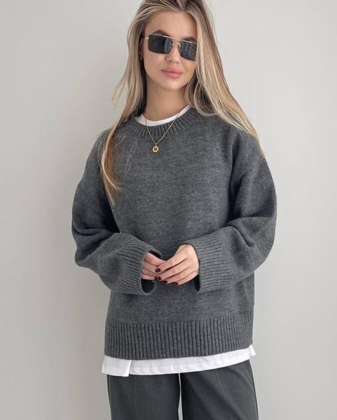 Vizon Bisiklet Yaka Oversize Triko Kazak